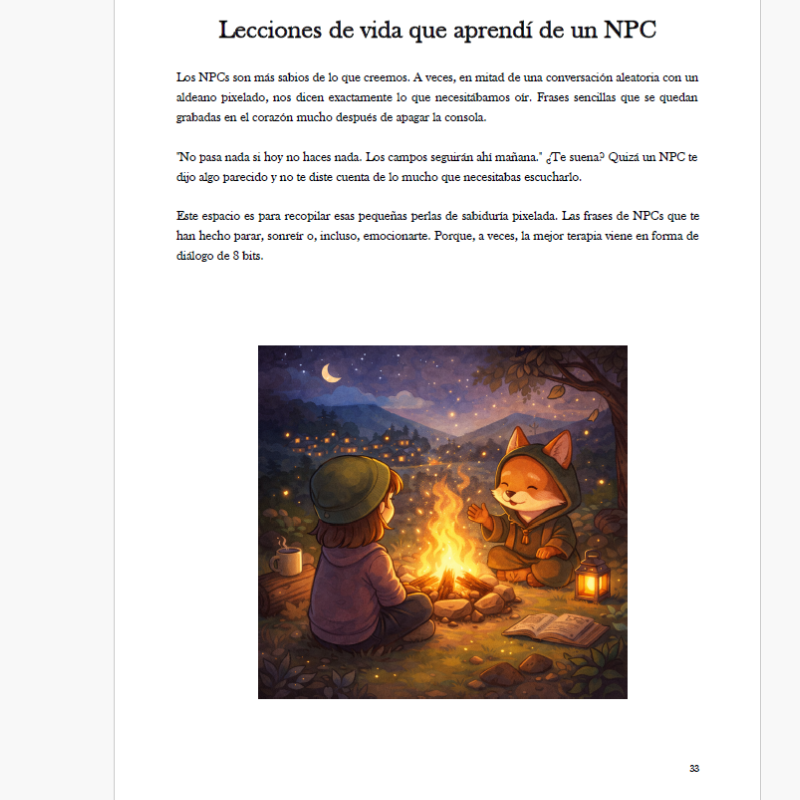 Este libro combina diario personal, planificador de juegos y guía de bienestar gamer en un solo lugar, pensado especialmente para quienes aman el gaming cozy y quieren disfrutarlo con más intención y calma.